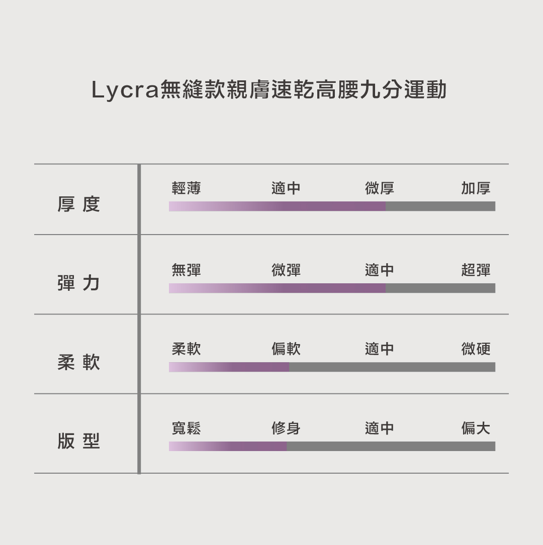 高彈力布料有著高度的活動度,適合各種運動不會產生緊繃感
