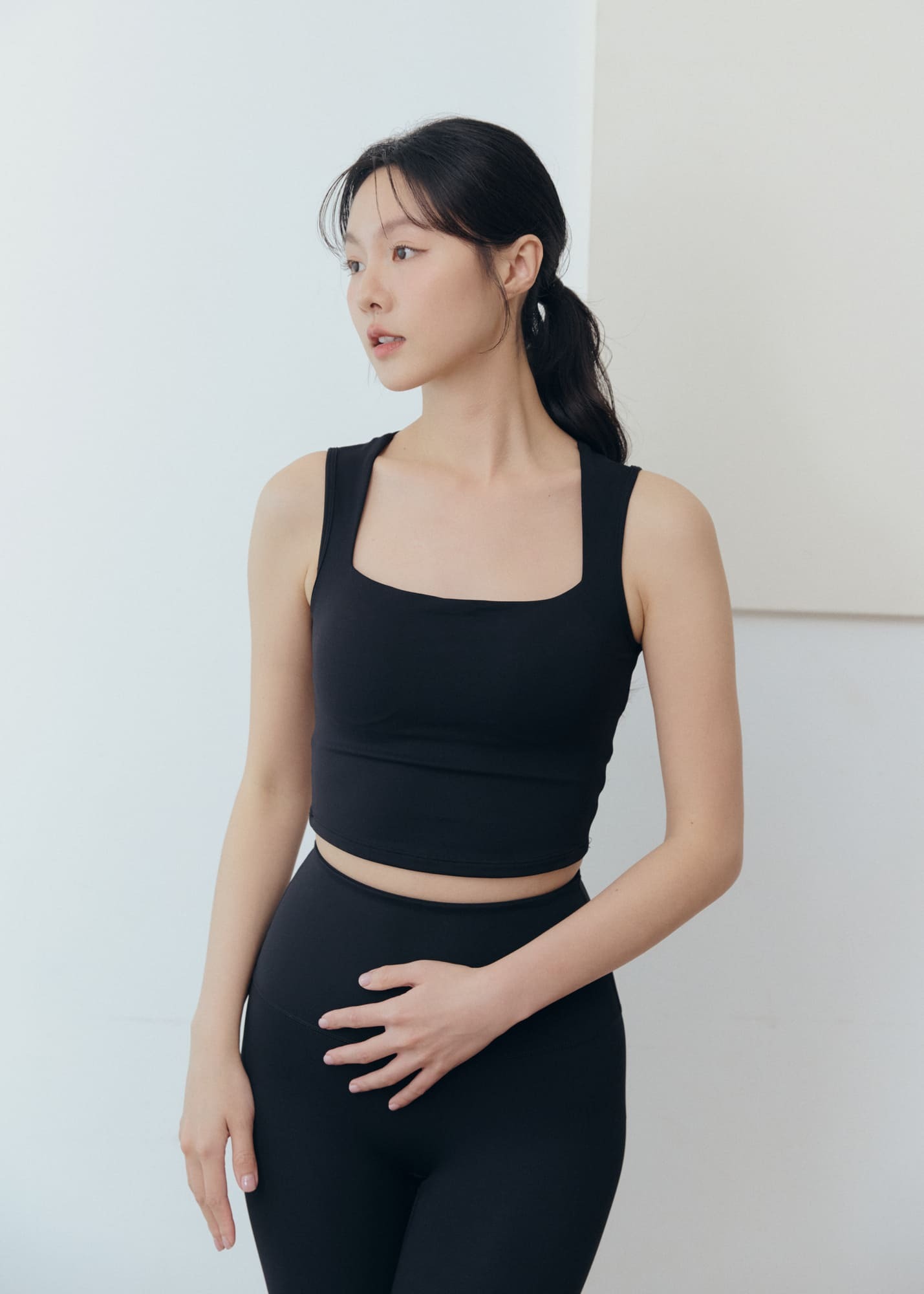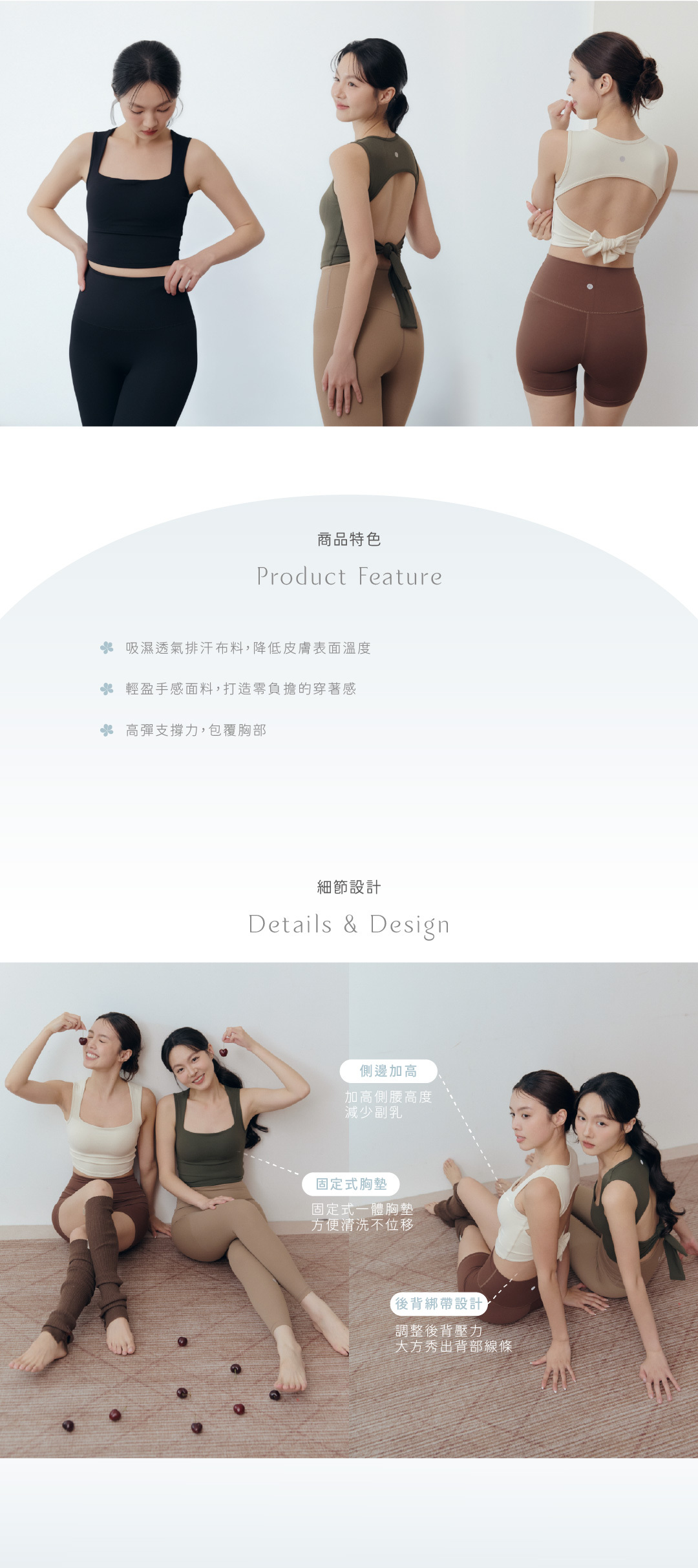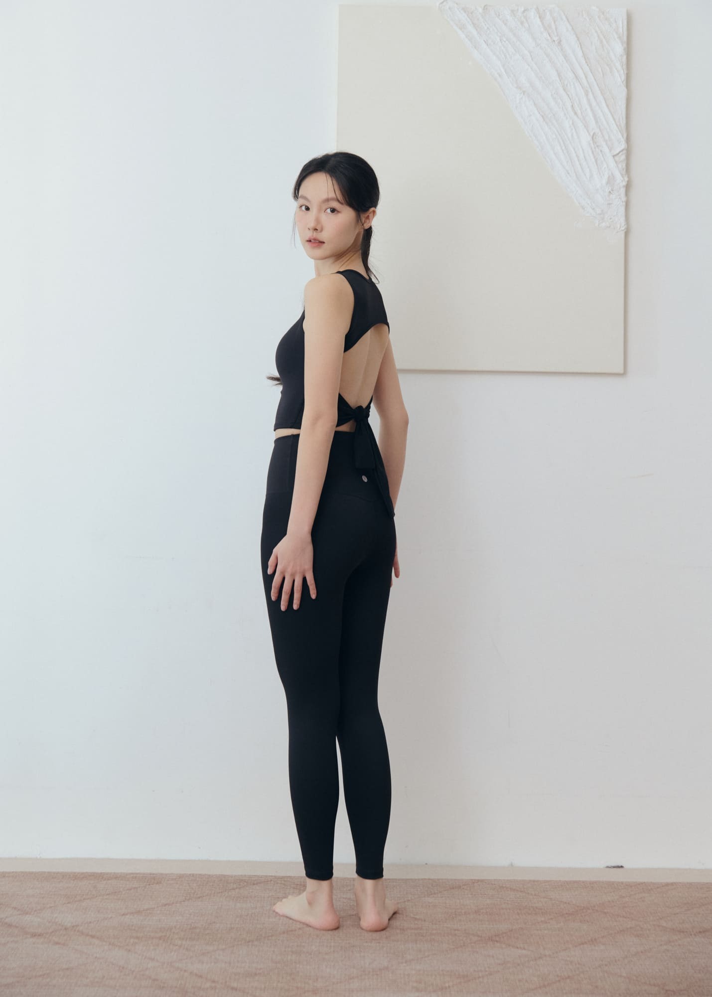 Ribbon後綁帶運動背心(固定式胸墊)-Black