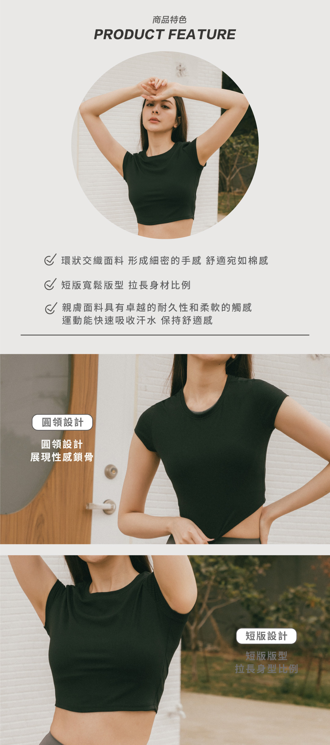 短版剪裁,小露性感,同時拉長腿部線條比例