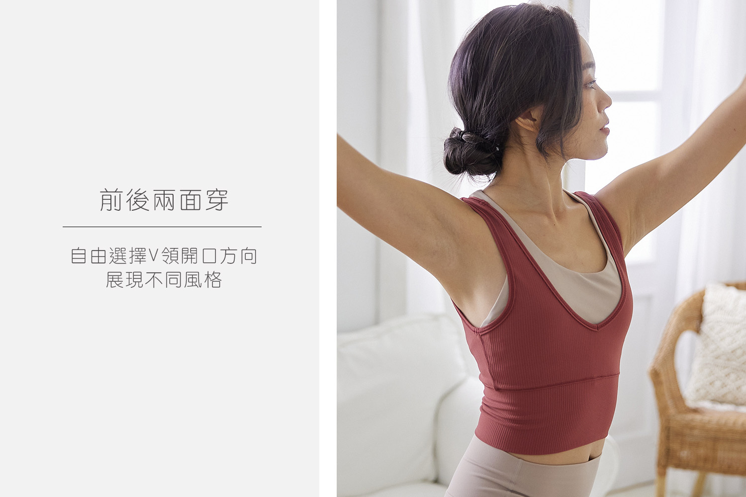 V型領口搭窄版肩帶,小露性感