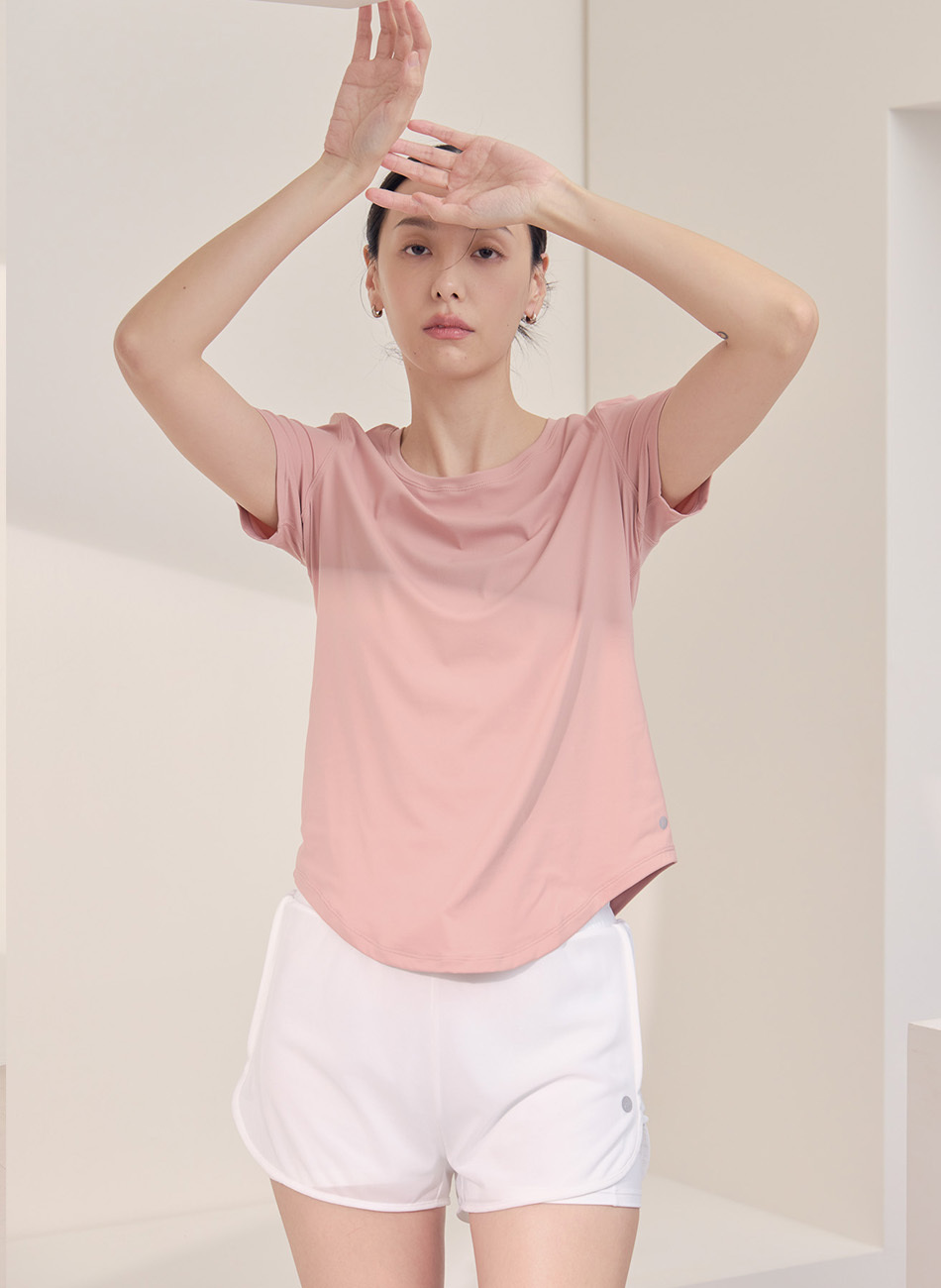 下擺弧形剪裁,側邊短中間長,修飾身形