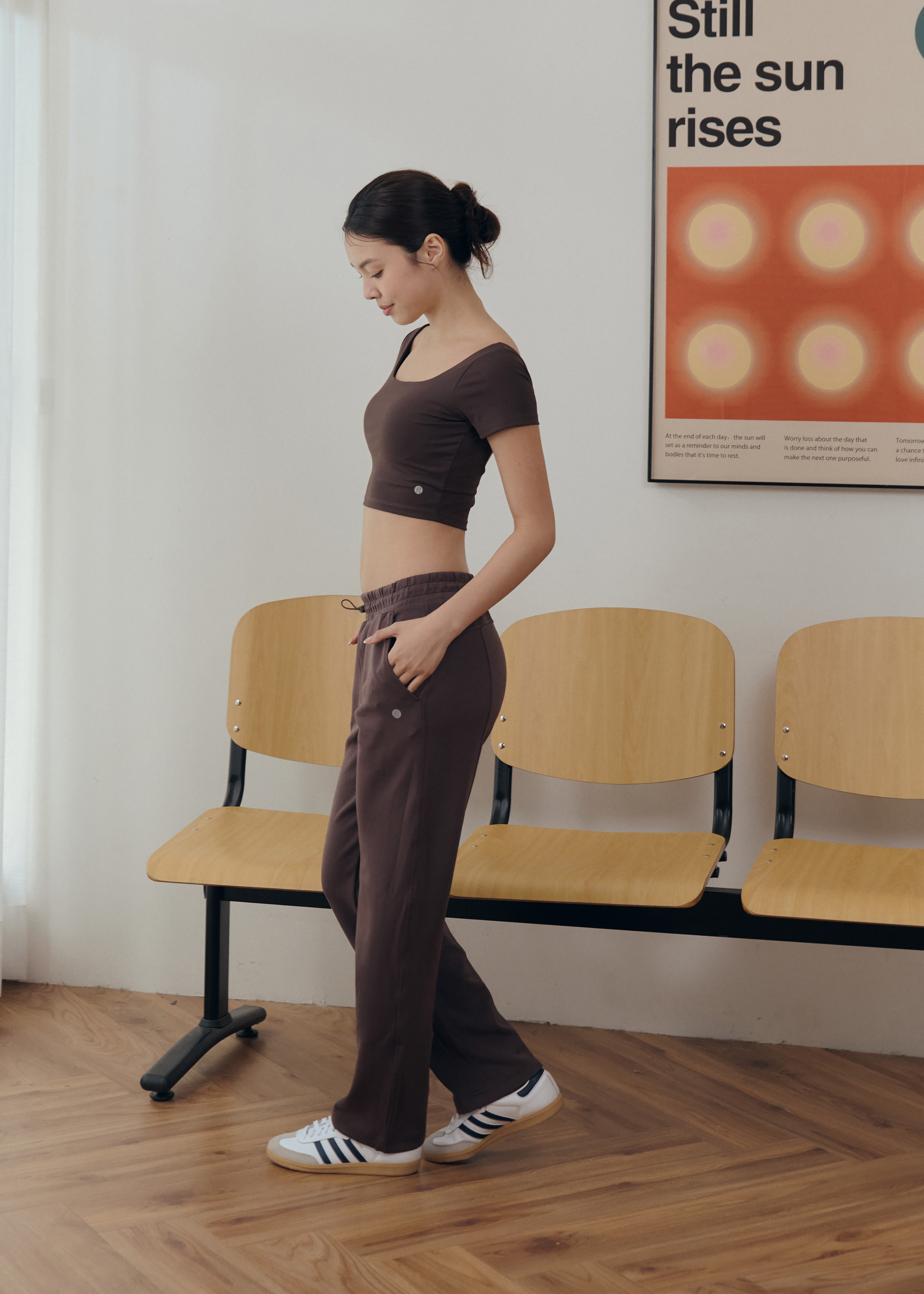 「外搭上衣X運動內衣」的進化設計,穿上一件即刻出發。採用「固定式胸墊」,怎麼動都不跑杯,機洗也省去了找胸墊、塞胸墊的困擾。中版長度設計,巧妙拉高腰線比例,視覺上自然延伸腿部線條,讓身形看起來更修長顯瘦。